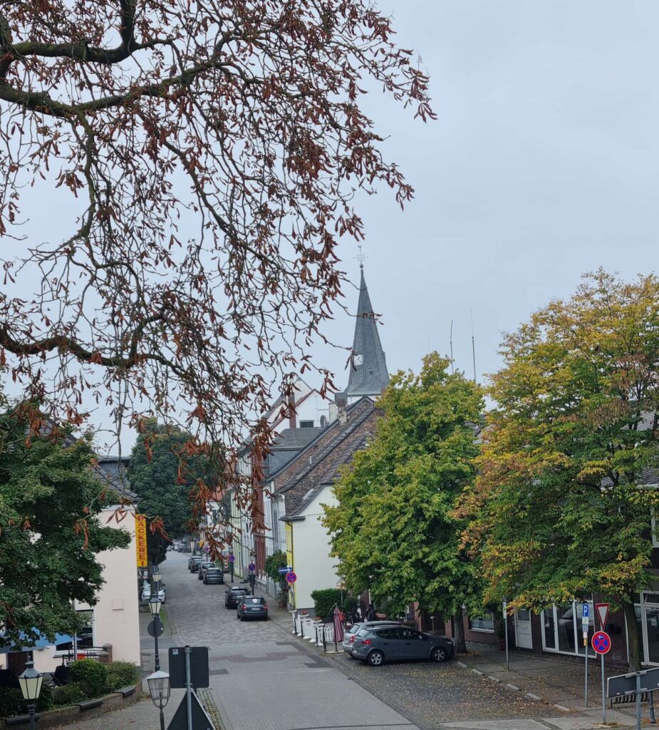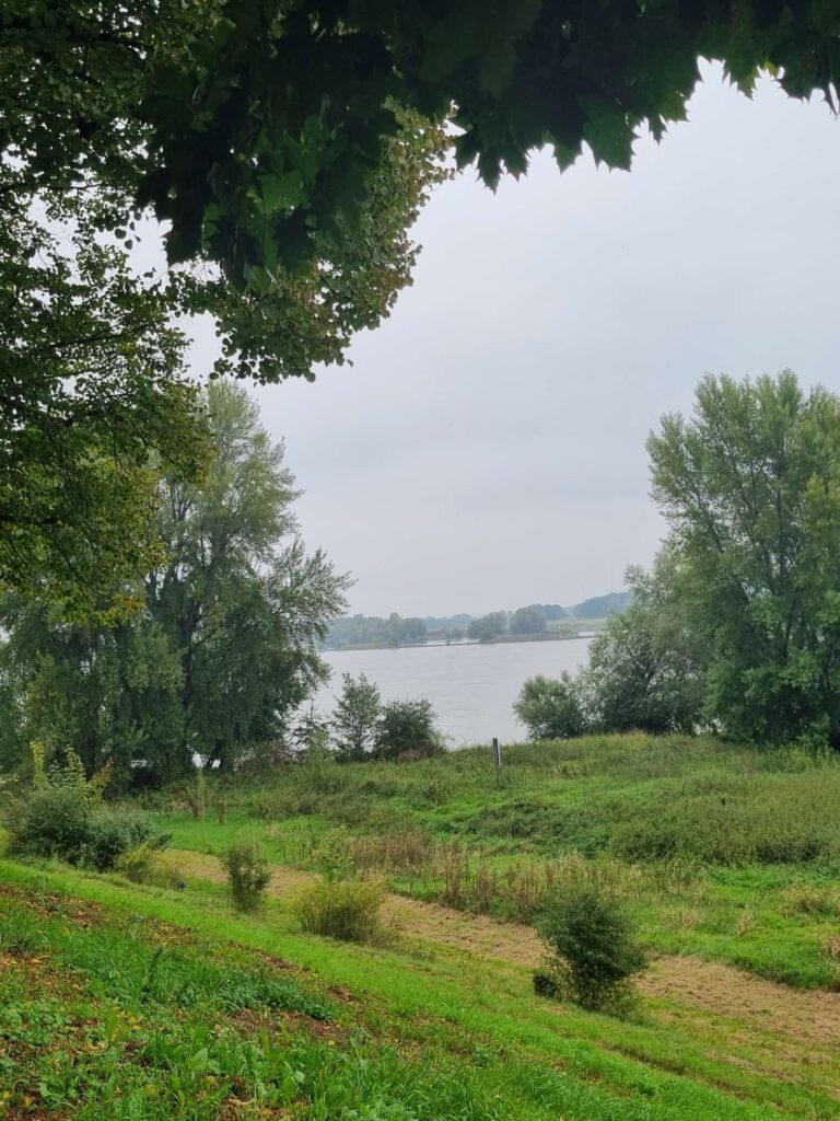 Anschließend machten wir einen historischen Rundgang entlang der mittelalterlichen Stadtmauern. Vorbei am Kuhteich, entlang zweier sehr alten Friedhöfen, mit dem Galgenberg (welch treffend passender Name) zum mächtigen gut erhaltenen Pulverturm. Danach ging es weiter zu einer weiteren Deich-Promenade mit nochmaligem Blick auf Vater Rhein, ehe es durch die Dorfmitte zum Einkehrschwung in den Orsoyer Hof ging.